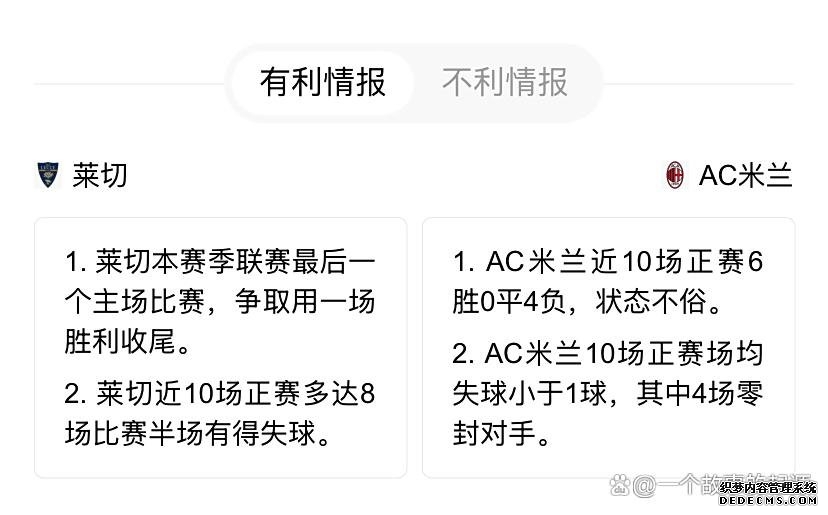 北京时间8月30日凌晨2:45,意甲第二轮将上演一场颇具看点的对决——“小辣椒”莱切坐镇维亚德尔马雷球场迎战七届欧冠得主AC米兰。这个夜晚,对AC米兰而言,是一场必须证明自己的救赎之战。 新赛季首轮,两队命运迥异却各怀烦恼。莱切客场0-0闷平热那亚,虽然防守稳健但进攻乏力;AC米兰则在主场1-2爆冷负于升班马克雷莫纳,全队士气遭受重击。这场看似实力悬殊的较量,实则暗流涌动。 ![]() 01 赛前动态 莱切带着首轮取得的1分回到主场。主帅迪弗朗西斯科在赛前发布会上表示:“我们会遇到一支充满怒火的球队,他们将不惜一切代价努力取得满意的结果。” 莱切本赛季最大的损失是核心前锋克尔斯托维奇转会亚特兰大,他的离队导致球队进攻端出现明显“断档”。首轮联赛,莱切全队竟没有一次射正球门,锋无力问题突出。 AC米兰正处在风暴眼中。首轮主场败给升班马的耻辱结果让新帅阿莱格里面临巨大压力。尽管全场比赛米兰轰出24脚射门,却只有1个进球,暴露出进攻效率低下的问题。 雪上加霜的是,米兰的伤病情况不容乐观。头号射手莱奥因小腿拉伤出战成疑,如果他缺席,将导致球队左路突破能力下降60%。普利西奇虽然脚踝伤势未愈,但本场可能带伤出战。 02 首发阵容对比 莱切预计阵容(3-4-2-1): 门将:法尔科内 后卫:巴斯齐罗托、加布里埃尔、希伯特 中场:加洛、布林、霍安·冈萨雷斯、多古 前锋:班达、皮科利、斯特雷费扎 莱切的首发亮点是17岁小将卡马达,这位从米兰租借而来的天才少年可能首发出战旧主。主帅迪弗朗西斯科建议他:“如果他首发出场,必须保持冷静,并且竭尽所能。” ![]() AC米兰预计阵容(3-5-2): 门将:迈尼昂 后卫:托莫里、加比亚、帕夫洛维奇 中场:穆萨、奇克、莫德里奇、福法纳、埃斯图皮尼安 前锋:普利西奇、希门尼斯 米兰的新援莫德里奇将坐镇中场,他的经验和传球能力将是球队进攻的关键。帕夫洛维奇首轮即斩获进球,同时完成9次解围,表现亮眼。 03 球员对位看点 吉鲁vs加布里埃尔:空霸之战 吉鲁首轮虽未进球,但争顶成功率达65%。莱切中卫加布里埃尔首轮贡献7次解围,状态火热。这场高空博弈,将决定禁区统治权。 莫德里奇vs布林:中场控制权争夺 莫德里奇的大赛经验和传球视野将是米兰打破僵局的关键武器。莱切中场布林则需要用他的拦截能力(首轮4次拦截,联赛第3)来切断米兰的供应线。 埃斯图皮尼安vs加洛:边路攻防大战 厄瓜多尔飞翼埃斯图皮尼安首轮送出1次助攻,他将面对莱切边翼卫加洛的防守。这条边路通道的胜者,很可能决定比赛走向。 ![]() 04 状态与优劣分析 莱切优势与劣势 莱切的最大优势是防守韧性和主场气势。首轮他们完成11次抢断,零封对手。 一旦在主场领先,莱切本赛季的赢球率达到100%,展现出极强的执行力。 但球队进攻乏力问题突出。核心前锋离队后,新援班达尚未融入体系,首轮替补登场30分钟仅1次禁区内触球。 AC米兰优势与劣势 米兰在控球和创造机会方面拥有压倒性优势:首轮射门24次(联赛第2)、关键传球20次(第2),传球成功率高达90.6%(第2)。 球队防守稳定性不足(首轮失2球),而且进攻效率低下(24脚射门仅1球)。莱奥的缺阵更是让进攻问题雪上加霜。 05 关键对决与胜负手 胜负手一:谁能把握开局 莱切擅长开场阶段的高压逼抢,首轮前30分钟就制造了3次威胁射门。如果能够借助主场气势率先破门,他们很可能复制上赛季“领先即赢球”的模式。 米兰则需要克服首轮失利的心理阴影,尽快进入比赛状态,避免再次陷入被动局面。 胜负手二:中场控制权 米兰中场拥有莫德里奇、里奇等技术型球员,而莱切则擅长中场绞杀(首轮完成15次抢断)。哪支球队能掌控中场,就有更大胜算。 胜负手三:进攻效率 米兰创造机会能力毋庸置疑,但能否将其转化为进球是关键。莱切虽然进攻机会少,但需要把握住有限的机会,尤其是定位球和反击。 ![]() 06 教练博弈 迪弗朗西斯科(莱切) 虽然上赛季带威尼斯降级,但丰富的意甲执教经验(曾执教罗马)帮助莱切快速完成战术磨合。他擅长打造防守体系,首轮就零封对手证明了他的能力。 阿莱格里(AC米兰) 这位曾率米兰夺得意甲冠军的教头,擅长打造稳固防守与务实战术。首轮失利后,他大概率会调整阵型(可能回归4-3-3),强化中场控制与防守厚度。 07 历史交锋与预测 历史交锋方面,AC米兰对莱切拥有压倒性优势。近10次交锋,AC米兰取得了8胜2平的绝对不败战绩。上赛季,米兰更是主客场双杀莱切(主场3-0、客场3-2)。 不过值得注意的是,莱切最近一次主场对阵米兰时,西班牙前锋莫伦特曾梅开二度,帮助球队2-2逼平红黑军团。 ![]() 比分预测: 综合各方因素,多数专家预测AC米兰将小胜对手(1-2或0-2),但也有观点认为莱切可能主场逼平米兰(1-1)。 Opta模型显示米兰胜率高达65%,但莱切的主场韧性不可小觑。预计AC米兰2-1险胜,但若久攻不下,平局可能性不小。 维亚德尔马雷球场的球迷们将成为莱切的第十二人。如果主队能够顶住米兰初期的猛攻,比赛很可能陷入胶着状态。 而对于阿莱格里来说,这不仅仅是一场争夺三分的比赛,更是一场正名之战。他需要证明自己仍然是那个能够带领米兰重返巅峰的教练,也需要证明首轮的失败只是一个意外。 结论 最终,很可能还是米兰球员的个人能力决定比赛。即使没有莱奥,普利西奇、希门尼斯和莫德里奇的组合也足以在任何