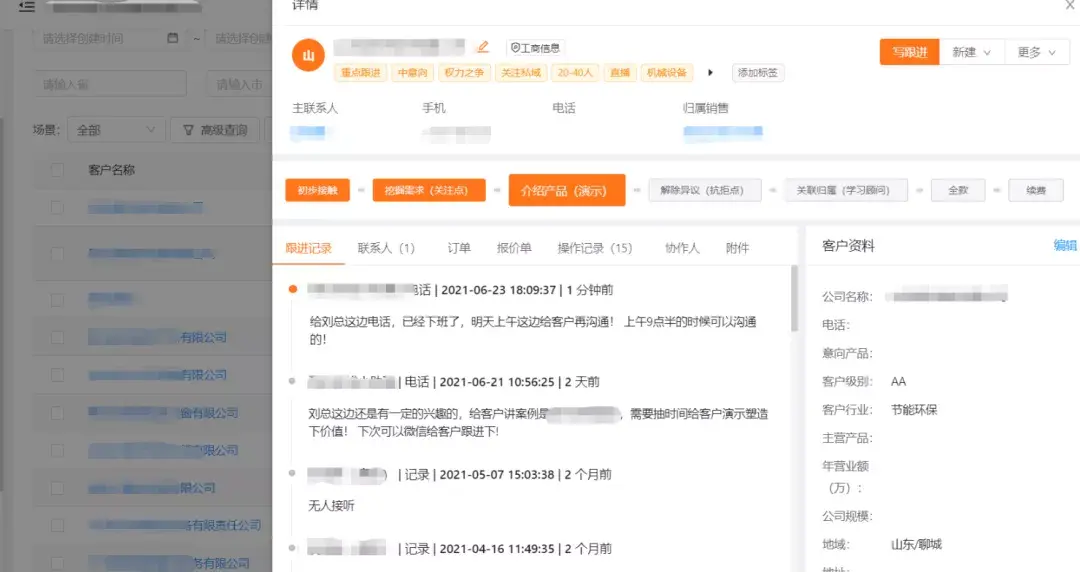 很多企业仅仅将销售看做一项技能。 其实,相较于技能,销售其实更接近于是一门科学,有效的销售管理对于任何企业的发展都是至关重要的。 当企业的整个销售系统采用科学的管理方法和信息化工具,大多数销售过程都会更平稳、顺畅的前进。 因此,让你的销售团队使用正确的CRM,实现科学化的销售过程管理,不断地将销售线索放到销售流程中进行转化并促成,这对提高销售业绩大有益处。 下面,我们将介绍一些实用的销售管理方法,来帮助企业构建稳健的销售过程。 ![]() 1、使用一体化的CRM 在当前复杂的市场环境中,提高销售效率的关键之一就在于使用正确的信息化技术。 已经有越来越多的企业开始认识到CRM在销售管理上给企业带来的好处,比如管理其销售过程,并推动业绩增长。 这是因为,一体化的CRM系统包括销售管理、销售支持工具、流程自动化和数据分析模块,这些都在同一个平台上。 我们在线SCRM就是一体化的CRM,这意味着企业的推广、客服、销售、财务等业务都可以集中在CRM中,这可以有效提高跨部门的协同效率,并给销售团队提供更多支持。 事实上,下面的销售实践方法将围绕使用CRM而展开。 2、协调销售团队和营销团队 营销团队与销售团队的高效协同,有利于保持销售过程的稳定发展。 大多数企业都存在这样的情况,包括我们80%的客户,都有过营销团队和销售团队相互扯皮,影响团队氛围的情况。 在整个销售过程中,营销团队的主要工作就是选择合适的推广渠道,制定正确的营销策略,来获取有效的客户线索。而销售团队的主要工作就是将这些客户线索转化为一个个实实在在的订单。 可以说,营销团队获取的线索质量很大程度上决定了销售团队的成交率,而销售团队的线索转化率也反馈了营销团队的营销策略是否合理。 在大多数企业,这两个团队的信息都没有进行有效的共享,这就导致了营销团队输出过多不合格的线索,而销售团队则要将大量时间浪费在这些不合格的线索上。 当你的销售团队和营销团队都在使用CRM时,这两个团队将形成紧密的协同作用。 通过合并客户所有的接触点,将信息整合到同一平台,营销团队和销售团队就可以全面掌握客户信息,通过数据反馈调整营销策略,分析客户线索在销售过程中的表现,更好地管理销售流程并达成更多交易。 ![]() 3、识别高质量潜在客户 我们在线SCRM可以帮助企业销售人员在客户跟进的过程中识别高质量潜在客户。 在销售人员跟进客户的过程中,可以根据客户信息为客户打上标签,我们在线SCRM可以通过客户标签和成交数据自动生成客户画像,向企业展示已成交客户的共性。 一来,可以帮助销售人员根据客户画像,了解易成交客户特征,在跟进客户的过程中提前锁定此类客户。 二来,营销人员也可以根据客户画像中的特征,针对性制定营销策略,获取更多精准的目标客户。 ![]() 4、进行销售预测 CRM系统的各种仪表盘和报告可以帮助企业了解很多信息。 比如根据销售流程中的客户数量、转化率等指标,来准确的了解未来能够完成的交易数量。 这种对未来的洞察力有助于帮助企业评估销售趋势,制定可执行的销售目标,从而激励销售团队在有明确目标的情况下完成销售任务。 5、通过数据报表评估销售情况,诊断业务 我们在线SCRM系统可以帮助企业自动生成销售数据报表,帮助企业定期检查总体的销售情况。 比如可多维度分析的销售报表、销售团队中每个人具体的工作表现、客户开发和跟进的情况、网销渠道的推广效果等等。 并且,我们在线SCRM可以根据全局经营数据,分析关键指标,生成数据驾驶舱,帮助企业直观洞察业务全局,及时发现问题,诊断业务。 这就像你正在驾驶一辆汽车,可视化的仪表盘可以帮助你轻松抵达目的地。 ![]() 6、找出销售流程中的瓶颈 我们在线SCRM将销售过程视为分成多个阶段的旅程。 你可以跟踪每个客户当前所处的销售阶段,每个销售人员与客户在突破某个业务障碍时,都可以在销售流程中更新其阶段。 如果你看到客户在某个特定阶段停止,你可以帮助你的销售人员一起寻找解决方案,使其顺利通过每个阶段,最终成交。 同时,你也可以通过各个阶段的客户转化情况,找到客户流失严重的环节,这也是企业业绩增长的卡点,然后找出问题,对症下药。 ![]() 7、培育线索客户 有些潜在客户没成交并不是他们不需要你的产品,而是他们暂时还没有准备好购买你的产品,因此你不应该放弃他们。 销售人员可以使用我们在线SCRM来培育每一个潜在客户。 企业可在我们在线SCRM中导入产品介绍、行业资讯、客户案例等营销内容,帮助销售打造一个营销弹药库。 销售人员将营销内容分享给客户后,我们在线SCRM系统内置的客户雷达,可以帮助销售人员跟踪客户行为轨迹,多维度反馈客户行为数据,帮助销售人员掌握客户兴趣,及时把握销售机会。 ![]() 8、采用规范的销售过程管理 在一个复杂的销售过程中,尤其是销售额很高的B2B交易,销售人员往往需要经过多个阶段,逐步推进销售进展。 通过在销售过程中引入规范的流程化管理,销售人员可以在有指导的情况下稳步推进,使销售过程更加规范、高效,从而提高整体销售成功率。 ![]() 通过使用像我们在线SCRM这样一体化的销售管理系统,企业可以轻松发展业务并完成更多交易。 遵循以上这些科学的销售方法将为你的企业带来以下好处: 
