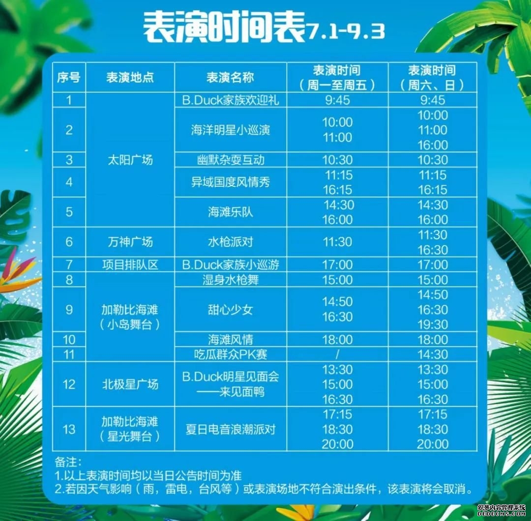 景区提示 ①为确保安全,景区可能因异常天气、特殊活动、游客饱和、设备检修等原因调整开闭园时间、项目或表演开放时间,请以当天景区现场公告为准。 ②所有游乐项目均会定期进行日检、周检和年度检查,相关检修工作可能会造成部分游乐项目运行时间延迟或暂停开放,详情以现场公告为准。 ③门票对景区内另行收费的项目无效。收费项目请参考园内公告。 ④园区项目现场均有游玩须知/要求,并设置了身高及体重限制、健康情况要求,请遵从现场公告及工作人员的引导。 水花飞溅、快乐迸发 冲刺进水里 感受清凉又刺激的夏天吧~ 快点进小程序参与活动 就有机会成为“幸运鹅” 让小体为你的快乐买单!