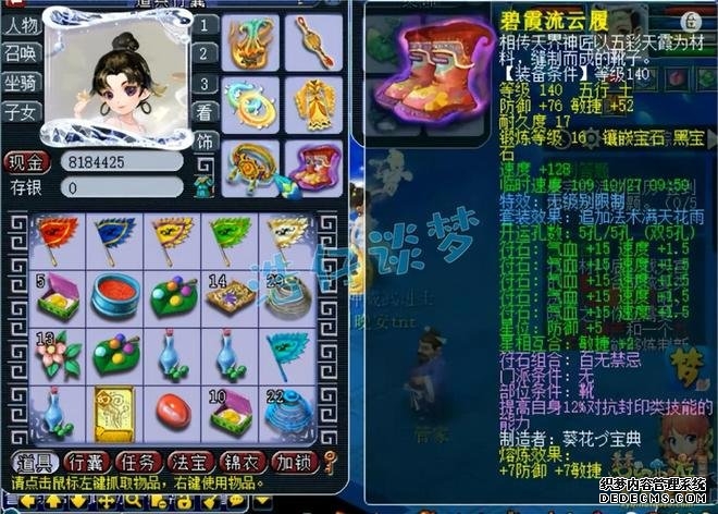 140级无级别满天花雨套鞋子,熔炼后敏捷59防御83,打了16锻黑宝石。