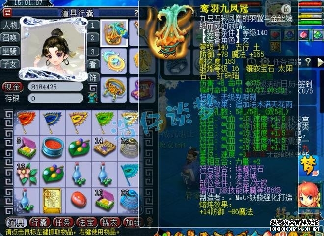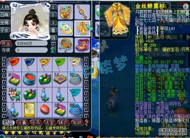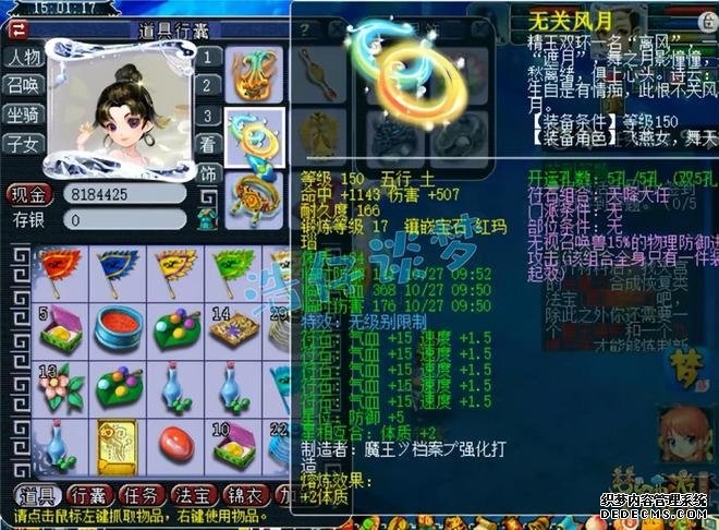 140级无级别满天花雨套女衣,单加力量34,打了16锻月亮石。