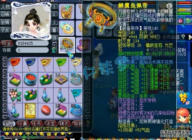 140级无级别满天花雨套腰带,打了16锻光芒石。
