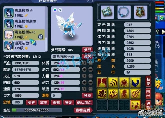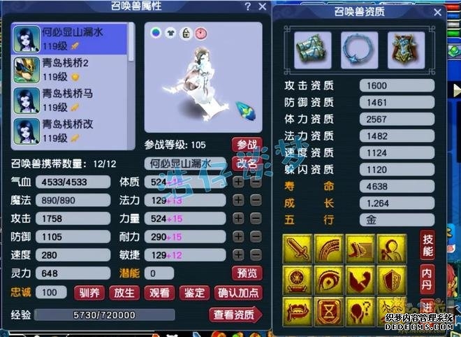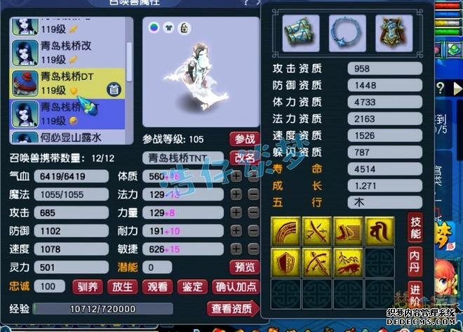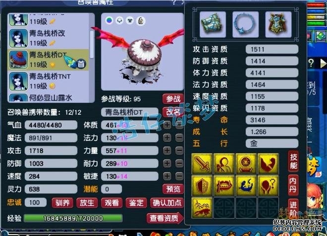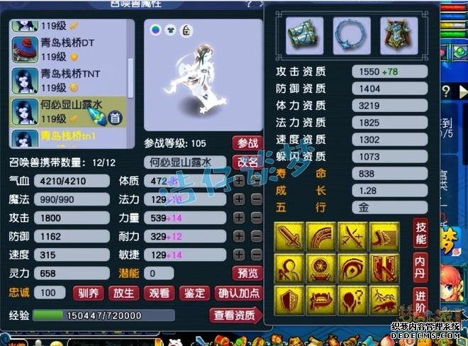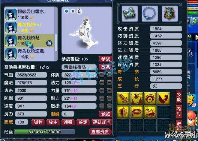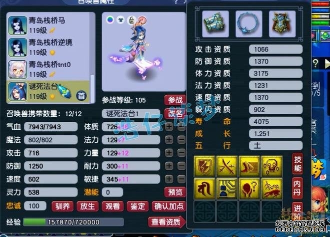 9技能耐攻力劈壁垒画魂,这只成长和资质也很不错,还多了辅助技能高幸运。