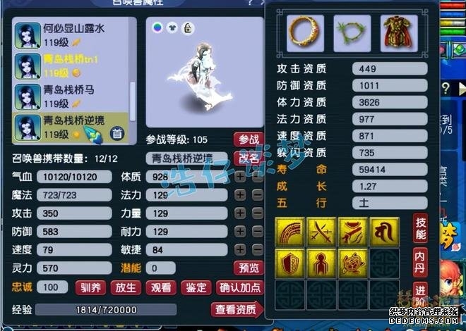 8技能耐攻力劈壁垒狐不归,这种宝宝就是用来清宠了,109女魃墓上场率还是很高的。