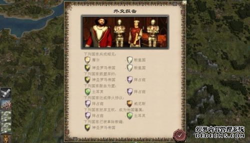 小伙伴们知道中世纪2:全面战争怎么掌控教皇吗?今天小编就来讲解中世纪2:全面战争掌控教皇的方法,感兴趣的快跟小编一起来看看吧,希望能够帮助到大家呢。 1、先游戏开局名声是正的,这时可以直接找教皇结盟。 ![]() 2、然后派遣外交官到教皇国,开展外交,定期进贡钱财。 ![]() 3、参加十字军东征并且攻城成功。 ![]() 4、派遣大量牧师去天主教覆盖率低的地方传教,或者审判地图上的异端宗教分子。 ![]() 5、如果关系不好被革除教籍就会减治安,降将军虔诚,降牧师虔诚。 ![]() 6、最后当中后期建立了稳固的势力范围,就不用刻意掌控教皇。 ![]() 配置要求 操作系统:Microsoft Windows 2000/XP CPU:Intel Celeron 1.7GHz Pentium 4或者同等级别的AMD处理器 内存:512M 硬盘:13GB以上空间 声卡:完全兼容DirectX 9.0c 的16-bit声卡产品 游戏外设:完全兼容Windows 2000/XP操作系统的键盘鼠标 DirectX版本:DirectX 9.0c 显卡:配置128MB显存、支持Shader 1.0技术并完全兼容DirectX 9.0c技术的Nvidia GeForce 4 Ti 4400或者ATI Radeon 9800显卡 以上就是给大家分享的中世纪2:全面战争怎么掌控教皇的全部内容,感兴趣的小伙伴们速来围观吧! (责任编辑:admin666) |