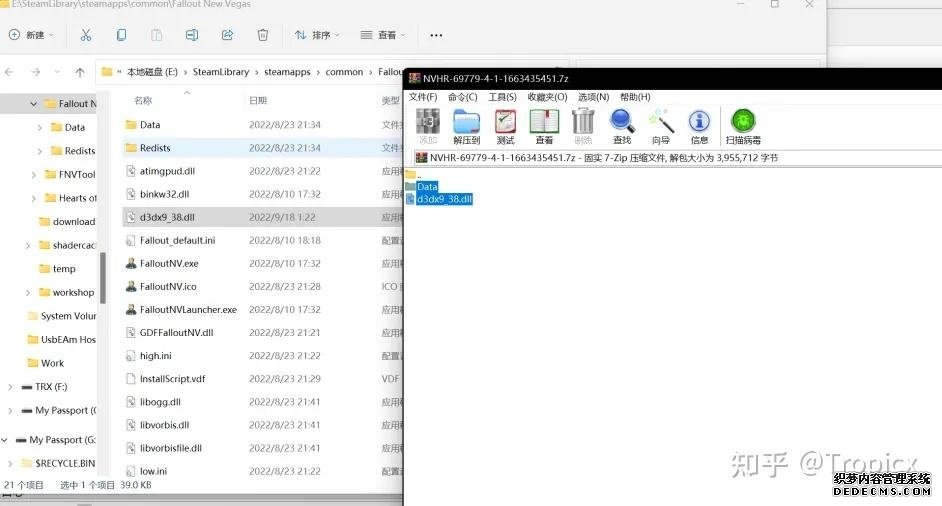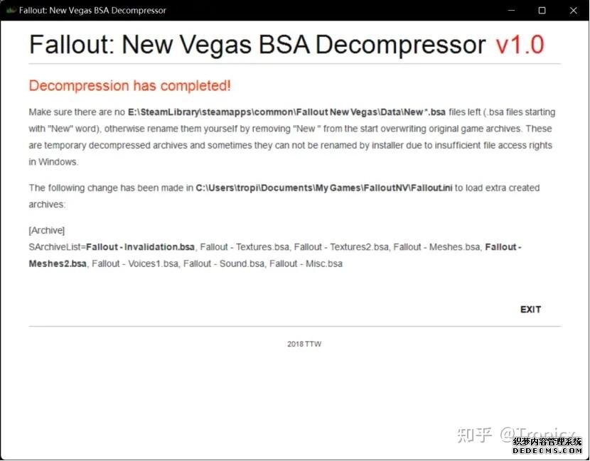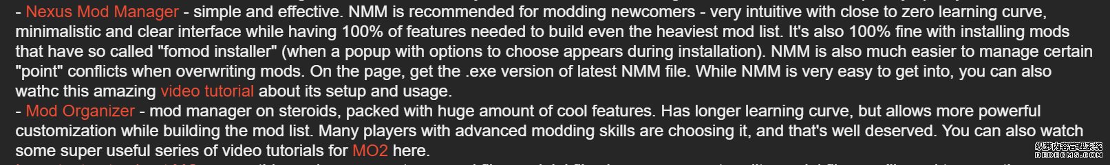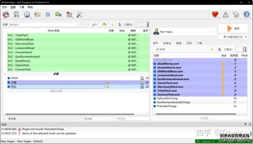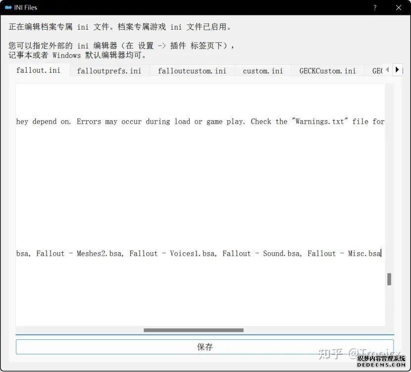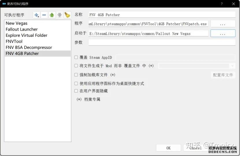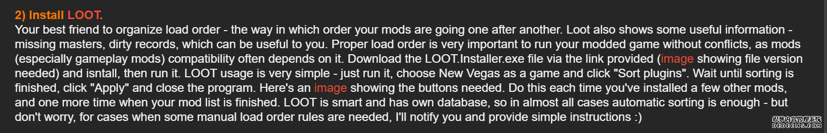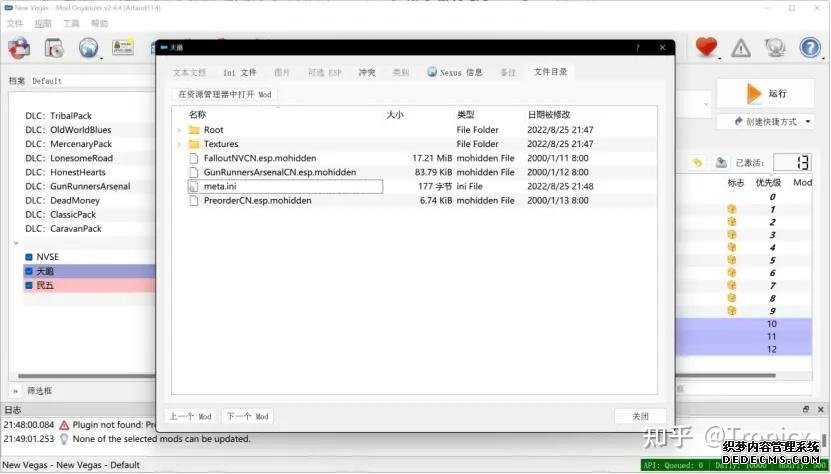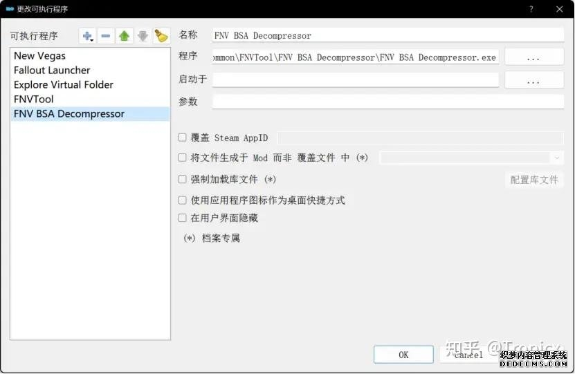 如一切正常,则以上部分安装完成。 基础部分暂时完成。 (未完,编写中) 你们以前可能就听说过Sinitar的新维加斯终极指南(Fallout New Vegas U.L.T.I.M.A.T.E.,下文简称终极指南),我明确反对该终极指南,并且对遵循该指南安装的游戏只有一个建议:全部删掉重来。 原因如下: 一、终极指南对Mod安装细节的强调完全不足(尤其是用来堆数量的小Mod,只放个链接加句话,有时连话都不加) ![]() 这样实际上是称不上指南的,而应该称为Mod推荐列表。很不幸的是,这个推荐列表里面的Mod完全没有经过挑选,如果完全按照终极指南安装将会出现严重问题。 以终极指南第一部分即稳定性和必要Bug修复为例,一开始的Mod管理器他居然推荐了NMM(理由是简单且高效???) ![]() NMM不同于MO2,它没有虚拟文件系统,每个Mod都直接装进游戏根目录,这就导致处理Mod之间的覆盖极其麻烦(相信用过的都深有体会),而在MO2里这只是拖动鼠标的事。他对NMM的评价一句都不要信,NMM相比于MO2在安装大量Mod时使用起来非常麻烦,不要用NMM!!! ![]() LOOT没有这么神。“LOOT很智能并且有自己的数据库,所以几乎在所有情况下自动排序就够了”——这绝对是错的,每一个完整的指南或整合包都会在安装所有Mod后提供一个排序文件而不是让人走一遍LOOT,因为手动排序对于安装大量Mod的游戏是必要的,而且必须要用FNVedit作参考。 ![]() ![]() 指南里还推荐了NVSR即New Vegas Stutter Remover,反而把更加先进的替代品NVTF作为备选项,与他说的正相反,目前NVTF的功能远强于NVSR(包括在60帧以上游玩),很多关于win10玩不了新维加斯的传言恐怕就是因为安装了NVSR,不要安装NVSR,用NVTF。 ![]() Sinitar对游戏INI做了许多完全不必要甚至可能有害的更改(如iNumHWThreads),改渲染设备名称、贴花渲染最大数量真的没什么意义。 ![]() 怎么能指望一个快10年没更新的半成品Enb来优化,尤其是有这么多更好的选择?如果你要安装Enb,不要开启Enboost,也就是说enblocal.ini里的speedhack请设置为false,这对汉化的电台字幕也很重要;另外也不要使用Enb的无边框功能,改为使用Onetweak。 ![]() 不要安装Wrye Bash,它除了把游戏目录弄乱对一般玩家几乎起不到作用,当前最好的修改等级列表的方式是脚本注入,因为不覆盖原列表所以不会造成兼容问题,而老一点的直接覆盖的方式也可以用FNVedit轻松做兼容,在Wrye Bash里乱来还可能导致mod缺失母esp,使游戏完全无法启动。 ![]() 不要使用Merge Plugins合并esp,如需合并请只使用FNVedit,自动合并可能导致脚本问题,后果自负。 下面部分还有The Weapon Mod Menu已被同在终极指南中的lStewieAl's Tweak完全替代等问题,此处不一一列举,总之终极指南列举的Mod不具有参考性,如果自行安装Mod,切勿盲目相信Sinitar、在终极指南中随意挑选安装,而是仔细阅读n网mod介绍及Post区、做好测试,终极指南连Mod推荐列表的功能都无法正常发挥。 你可能会想参考终极指南的材质部分,但是我得说明:终极指南的材质部分做得也很烂,比如里面列出的这个Conor's Cool Doctor's Bag医生包材质,这个医生包的网格是这样的 ![]() 再比如Hall Of Equipment,这个AI升级衣服材质的Mod质量还不如VNV点名批评的Charges那个;Blackwolf24s HD Clutter pack这个材质包里香烟的尺寸不规则(不是2的乘方),可能会导致游戏直接崩溃,Sinitar完全没有提到;武器方面WMX的问题也不多谈。 哔哔小子部分还推荐了Readius等手持Mod,但是没有加上手持修复,进入/退出哔哔小子过快会导致武器偏移 ![]() ![]() 如果你想改模型贴图,参考TTW and Fallout New Vegas Texture Guide — salamand3r这个指南,里面的Mod不仅挑选过,还有详细的安装说明避雷,比Sinitar的好多了 二、终极指南里有很多误导性描述,与本指南及其他许多指南(如Viva New Vegas及Wasteland Survive Guide)的理念严重相悖 首先,我不会推荐安装Enb(尽管也不反对),的确Enb的视觉效果很好,但是新维加斯的Enb完全是半成品,会导致不可避免的性能严重下降、抗锯齿效果糟糕、物体发光异常等问题,而且其发挥的许多功能有更好的替代品(不喜欢屎黄色滤镜,可以安装沙漠自然天气等天气Mod、使用Reshade;想要SSAO可以使用New Vegas Reloaded等)。 我建议遵循Fallout New Vegas Performance and Stability Guide这个性能指南优化游戏(使用N卡并且显示器支持HDR的强烈建议阅读该性能指南),我个人目前使用DXVK+n卡DXGI转换、Special K调整HDR输出+Reshade+New Vegas Reloaded 4.0beta,不仅游戏帧数远比Enb稳定,而且画面效果也不输Enb。 其次,新维加斯的Mod安装不是看哪个Mod喜欢就乱塞,如果你在Mod安装时不仔细挑选、细心阅读说明、做好调试,只会付出更多的精力进行排错,而且安装的Mod越多就越是如此。如果不想在一次又一次排错中丧失耐心、放弃Mod安装,要么就完全遵循一个可靠的指南(终极指南绝对不在此列),要么就在自己安装Mod的时候小心些。 还有,Mod间的兼容永远无法只依靠程序自动进行,像Sinitar那样搞个所谓的安装顺序LOOT走一遍、建个Bashed Patch再合并一下就搞定了的想法是严重错误的!完全按照终极指南来操作,你的游戏永远也不可能像他声称的那样“即使有数百个Mod,也不会出现崩溃、卡顿和内存问题”,而是会彻底烂掉,无法启动 如果你打了很多Mod,别人做的兼容补丁也不能完全解决问题,必须自己使用FNVedit排查冲突、做必要兼容。如果你想游戏稳定些、不要整天崩溃闪退跳出,但又想打一大堆Mod(对,这两个是可以兼顾的),那么