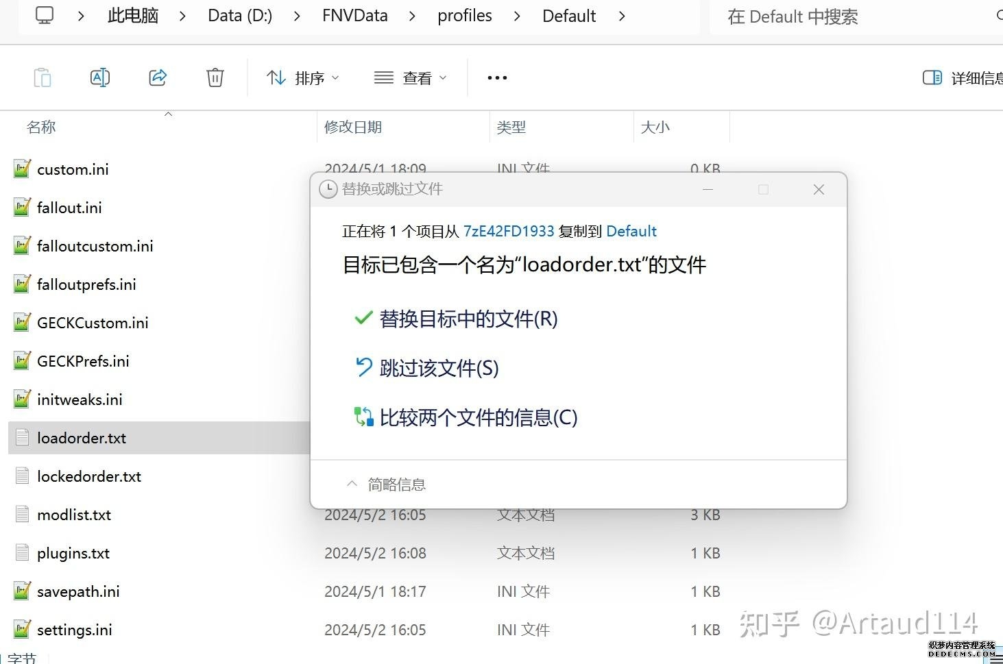 有问题首先查看常见问题及解答,如果无法解决则在介绍页面评论或者在q群问,不要在其他页面评论,更不要在知乎私信,很不方便 首先下载该排序文件: https://pan.baidu.com/s/18YxFExCzUcc1EgZKLNohsA?pwd=h9lr ![]() 打开该压缩包,可以看到里面有loadorder.txt ![]() 在MO2找到此按钮,打开INI配置文件夹 ![]() 随后弹出的文件夹中应有loadorder.txt(如果没有则你在MO2打开的不是INI配置文件夹),将下载的排序压缩包里的loadorder.txt解压至此 ![]() 此时应提示覆盖,选择替换覆盖 ![]() 回到MO2按下F5刷新,此时右边排序已更新为下载的排序(如果以后排序被弄乱可以重复该步骤,但指南之外的Mod插件无法通过此步骤排序) ![]() 除非你使用了民间汉化(不推荐),否则使用New Vegas启动项在MO2启动游戏 祝莫哈维之旅愉快 ![]() 启动游戏并退出后,在覆盖文件内可能有自动生成的文件(Overwrite变红),将其拖拽到对应Mod内即可,最好在每次打开游戏前保持Overwrite灰色 (责任编辑:admin666) |
