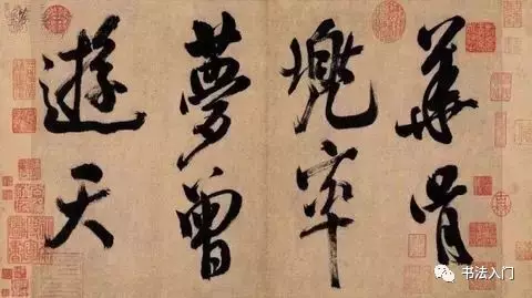 ▲米芾《多景楼诗帖》局部 再说有意识的残破,在行草书中被广泛应用,能够产生强烈的视觉冲击力。比如米芾的“多景楼”,几乎字字中都会出现一两笔的残破,并未给人纷乱和露骨的感觉,反而给人一种风卷残云、纵横酣畅之感。 就是因为他笔残而意不破,对用笔残破的度有精熟的把握,才令残破出奇而不影响整体书意,是以正和,以奇胜的经典之作。