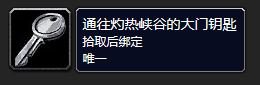 洛克莫丹通往灼热峡谷的通道大门钥匙。 任务开始于灼热峡谷的精英怪“狂暴的玛尔戈”