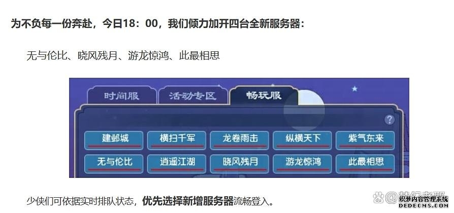 梦幻西游:当畅玩服加开到10个,性质就变了 最开始畅玩服说只开四个,这四个大区里已经有各大主播预定,带领自己的粉丝队伍冲一波。 临到开区前,说紧急加开一台,后来又加一台,一共六个服务器。我也能理解,因为12点的时候我在原始四个服务器中,根本排不上队。尊享都不给买。 ![]() 但是,紧接着又紧急公告,说6点钟再加四个服务器,一共10个了。 ![]() 这才第一天。 而且最后四个服务器,有玩家反映,不买绿通居然秒进。 这说明可容纳的人数已经到了极限了,就是前面6个服务器正好。 关键这才是第一天,有过来尝鲜的很正常。3天7天以后,热度下降,理性回归,到时候剩下的玩家还能不能撑起6个服务器就难说,何况是10个。 最后四个服务器还买绿通的真成了大冤种了。 ![]() 但是截止到晚上9点15分,我发现登录列表又只剩下最开始的6个服务器了,后续的四个似乎是取消了还是隐藏了。 如果这样还敢继续开服务器,那真成了垃圾页游手游的滚服模式了。到时候每个区能留下10个活人就算成功,然后开始大规模合区。 我当然不希望这样的事发生,太伤信任度了。 我到下午4点多也算是进去玩了会,一个小天宫,在纵横天下。 ![]() 前期做完新手任务就20多级了,然后去爬塔,能打的都打过,就已经30级了,到达上限了。剩余的就是刷经验点技能,和给第二天存着。 有不少组队去除暴安良,或者初出茅庐的,我这种单开根本进不了队伍。因为人家要2万车费,我到现在就获得了9000多梦幻币,还是挖图挖出来的,其余获得的全是储备金。 然后爬塔的时候给了张宝图,挖了本60爪刺书,我看了看摊位有摆1000万的,估计是坑货。不过这本书算是我的启动资金之一,现在还在摆摊卖,不知道能卖多少。 ![]() 之后就是单开可以刷刷王婆任务,暑假活动的,一次2万经验很不错。中间还看到一支队伍在杀知了王,很难得,新区第一天都能杀过了。 ![]() 这个区我就是蹭热度来的,后续玩多久取决于热度能维持多久,肯定不会重金投入,时间也不想投入。就是正式服五开刷的同时,开一个窗口跑跑任务。 目前最大的感受就是新区物资特别短缺,这种畅玩服限制更多更短缺,真的是不氪金没法玩。现在马上合成旗,飞行符都快用完了,都没得买,点香都是计算着点。 举报/反馈 |