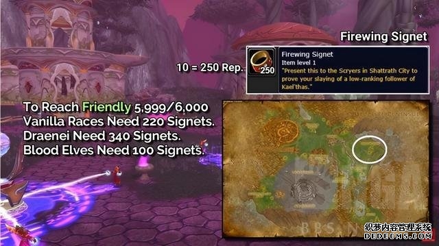 作者:NGA-疯絮弥漫 70升级声望最大化流程 清副本=全杀≠全通 中立-0-2999 友善-0-5999 尊敬-0-11999 崇敬-0-21000 满了就是崇拜 第一步60级地狱火半岛声望 进黑门直接去鲜血熔炉,一趟750声望,需要12趟,9000声望达到5999/6000声望 之后交任务到尊敬,会有更多城墙和鲜血熔炉任务,各打一次 完成后交完任务大概声望:尊敬10685/12000,差1315崇敬,70后打一趟破碎大厅有1604声望 第二步62级塞纳里奥声望 起手先不动任何任务,奴隶围栏或者沼泽洞穴刷到友善满 围栏915/趟 总计10趟 地窟1040/趟 总计9趟 “红色木槿“是副本中掉落可以增加声望的物品,刷到5999/6000声望后开始清任务 不想刷副本的朋友可以在下图地点刷怪获取”未鉴定的植物“,10个250声望,总计需要9000声望=360个植物(或者ah拖?) ![]() 未鉴定的植物交任务有机会再开出一个增加声望的物品“未归类的植物”,请在5999/6000后再使用 之后开始清理任务-地狱火城墙,赞加沼泽,泰罗卡森林 任务全清后声望大概是63级崇敬565/21000 第三步 到沙塔斯完成占星者或者奥尔多声望选择任务 ![]() 奥尔多声望物品刷怪地点,德莱尼需要100个,血精灵需要340个,其他种族需要220个 基尔加丹印记 10个=250声望 ![]() 占星者farm地点,数量德莱尼血精灵对调一下就行,火翼徽记 声望到达5999/6000左右(请先完成任务再去farm物品)你应该已经64级左右了 第四步平民窟声望 选择1刷本:奥金顿墓穴 700声望/趟 需要13趟 选择2打怪:刷鸦人的羽毛(推荐没到64级的朋友刷一下)30个=250声望 中立到尊敬需要1080个羽毛,可以交易 ![]() ![]() 清任务总计5950声望,清完声望大概在尊敬5950/12000,大概在65级左右 第五步星界财团 法力陵墓990声望/趟 10趟,副本任务在5999/6000卡住的时候交 之后清纳格兰任务,完成后大概尊敬3360/12000声望 第六步查漏补缺 如果你还没有到66级 清理纳格兰任务,星界财团,库雷尼/玛格汉任务 刷奥多尔/占星者声望 刷食人魔 升到66级 第七步时光守护者 逃离敦霍尔德 1150声望/趟 3趟全清,在最后boss前杀所有小怪 理论上先清一次就够了 之后可以去打开启黑暗之门(18摸) 1110声望/趟 11趟可以刷到崇敬210/21000(之后来刷也行) 第八步平民窟第二阶段 赛泰克大厅1036声望/趟 6趟 目标67级 声望崇敬160/21000 第九步 清理塞纳里奥/星界财团更多任务,之后去刀锋山/虚空风暴 或者继续打没打完的赛泰克大厅/开黑门副本 目标达到68级 塞纳里奥声望崇敬5635/21000 星界财团 尊敬9330/12000 第十步卡拉赞 小德可以先去做职业任务,再去完成卡拉赞门任务 第十一步沙塔斯阵营声望 ![]() 奥多尔刷怪地点如图,邪能装备350声望/个,萨格拉斯印记10个=250声望 ![]() 占星者刷怪地点如图,道具不同,声望获取相同 天空三本需要小德68级,其他职业70级才能到达(飞行)(沙塔尔声望) 能源舰1620声望 禁魔监狱1800声望 生态船2000声望 贫民窟声望 暗影迷宫2010声望/趟 最后如果你还没有到70级,那么推荐以下方式边刷声望边练级 1. 奥多尔/占星刷怪 2. 平民窟声望 赛泰克大厅/暗影迷宫 3. 刷食人魔念珠 4. 塞纳里奥声望 蒸汽地窟 5. 时光守护者声望 黑色沼泽 七十级: 此时你应该荣耀堡/萨尔玛 差一点崇敬,打一趟破碎大厅就可以了 塞纳里奥崇敬 平民窟崇敬 时光守护者崇敬 奥多尔/占星崇敬 沙塔尔尊敬(德鲁伊有可能崇敬) 星界财团尊敬 之后就可以愉快的推英雄本/尝试卡拉赞了! 举报/反馈 |