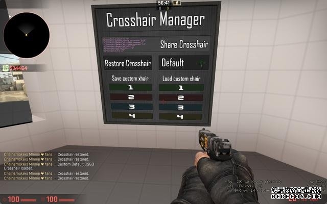 2.分享准星 当然如果你选好了准星就可以进行你的准星分享了,点击Share Crosshair,会弹出控制台,上面会显示当前准星的设置脚本,手动复制便可分享给他人。