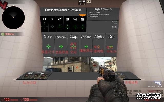 图中的Restore crosshair :恢复当前准星,如果你一不小心选了其他准星,那么你可以通过射击这个来找回你之前的准星,而在它右面的default:恢复系统准星,如果你觉得自己选的准星不如意,可以随时切回系统自带的准星。 Save/Load custom xhair 用于保存/读取准星,共有四个位置可以供你选择,当你有多个准星的时候可以用上这个功能,省下了不少找准星的时间,当然如果你是新手那么还是挑一个顺手的准星不要乱改~ 3.准星参数调试 这个界面就是你微调准星的地方了,根据图中的翻译可以自己选择调试方案。