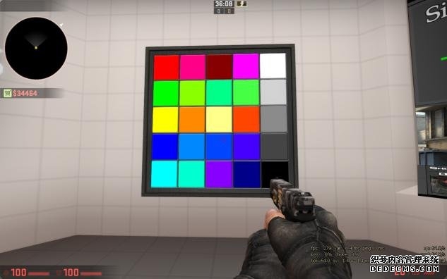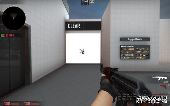 5.体验准星 现在我们已经设置好自己的准星,是时候体验一下是否适合自己了,进入TEST房间(电梯门)进行体验准星 一进门左边的白色幕布可以查看着弹点,拿AK举例