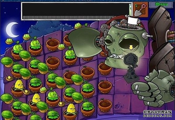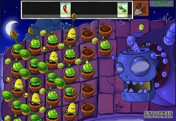 冰镇蘑菇除了可以消除火球还可以冰住Boss一段时间,所以当你的冰镇蘑菇数量富余时,就多多在Boss探头时冻住它,让植物多打它几下吧。 对了,胡椒也可以对Boss造成伤害,但记得留一些对付Boss吐出的冰球。 boss还会随机用汽车压扁你的植物,记得上面有花盆就补在缺损的地方,只要及时补充花盆,基本上你是不会缺火力的。