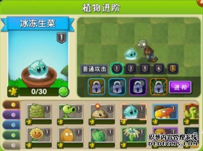 6、冰冻生菜,冻住踩到的僵尸,也可以熄灭火炬僵尸的火把,种植不用阳光,技能效果为冻住全屏僵尸。