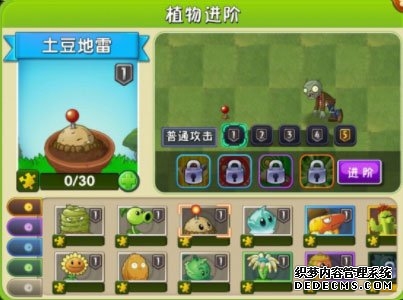 4、土豆地雷,土豆地雷会炸飞第一个踩到的僵尸,种植后需要一段时间启动,小伙伴要注意土豆雷种植后不能立马参与战斗的哦!需要花费25阳光,技能效果为向前方随机抛出两个土豆地雷