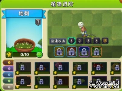 13、地刺,能扎破滚动的物件并且对踩到的僵尸造成伤害,种植花费100阳光,技能为对一条支线的僵尸造成大量伤害。