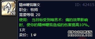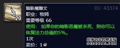 wlk暗牧天赋雕文推荐是什么?有些玩暗牧的小伙伴可能还不知道wlk暗牧天赋雕文推荐。下面小编就给大家带来wlk暗牧天赋雕文推荐介绍,感兴趣的小伙伴们一起来看看吧。 【攻略大全】【wlk全职业天赋雕文】 一、天赋 二、雕文 1、大型雕文 暗影雕文-在暗影形态中,非周期法术性暴击会提高0%法术强度,持续10秒。 精神鞭笞雕文- 目标受到暗言术痛的影响时,精神鞭笞的伤害提高10%。 分散雕文- 分散的冷却时间减少45秒。 2、小型雕文 浮空雕文- 漂浮术不再需要试剂。 坚韧雕文- 真言术坚韧和坚韧祷言的法力消耗降低50%。 暗影魔雕文-你的暗影魔死于伤害,则获得5%的最大法力值。 以上就是wlk暗牧天赋雕文推荐介绍的全部内容了,更多游戏相关资讯攻略请关注游侠网,我们将会第一时间更新最全的内容帮助大家了解该游戏,一起来看一下吧。 攻略汇总 |