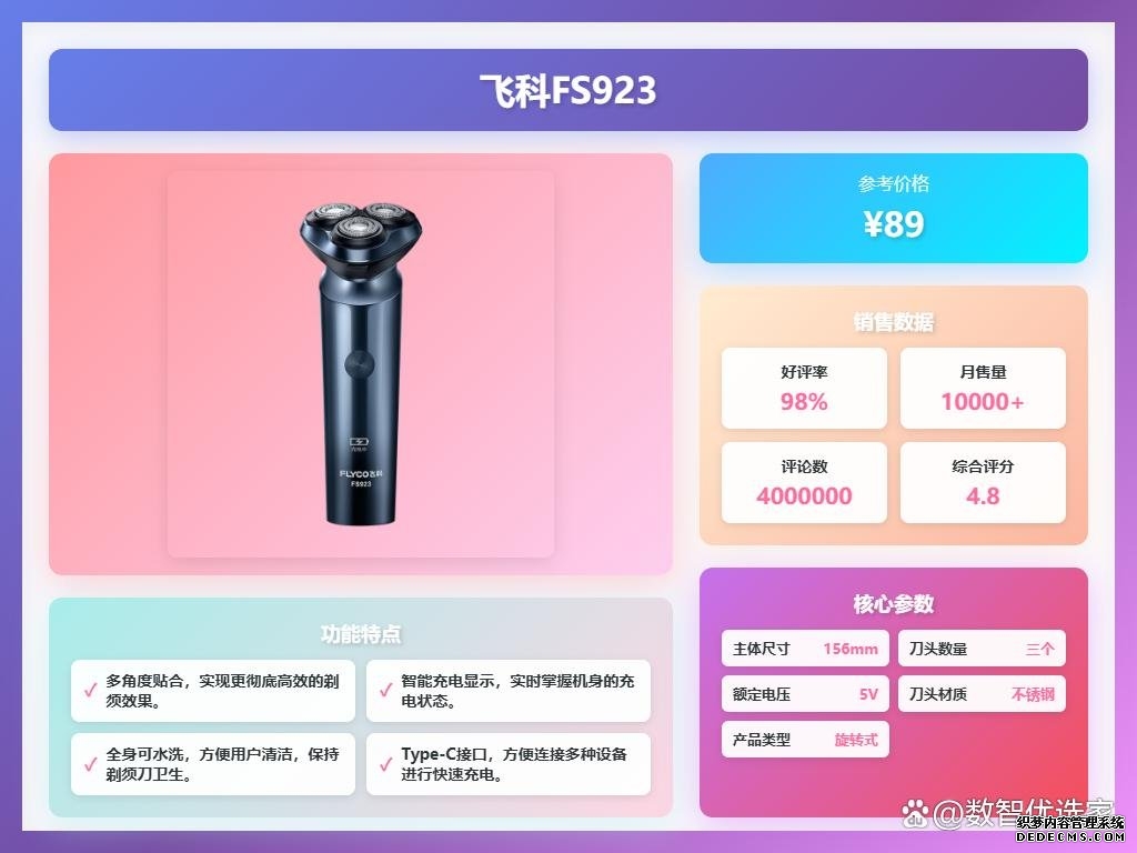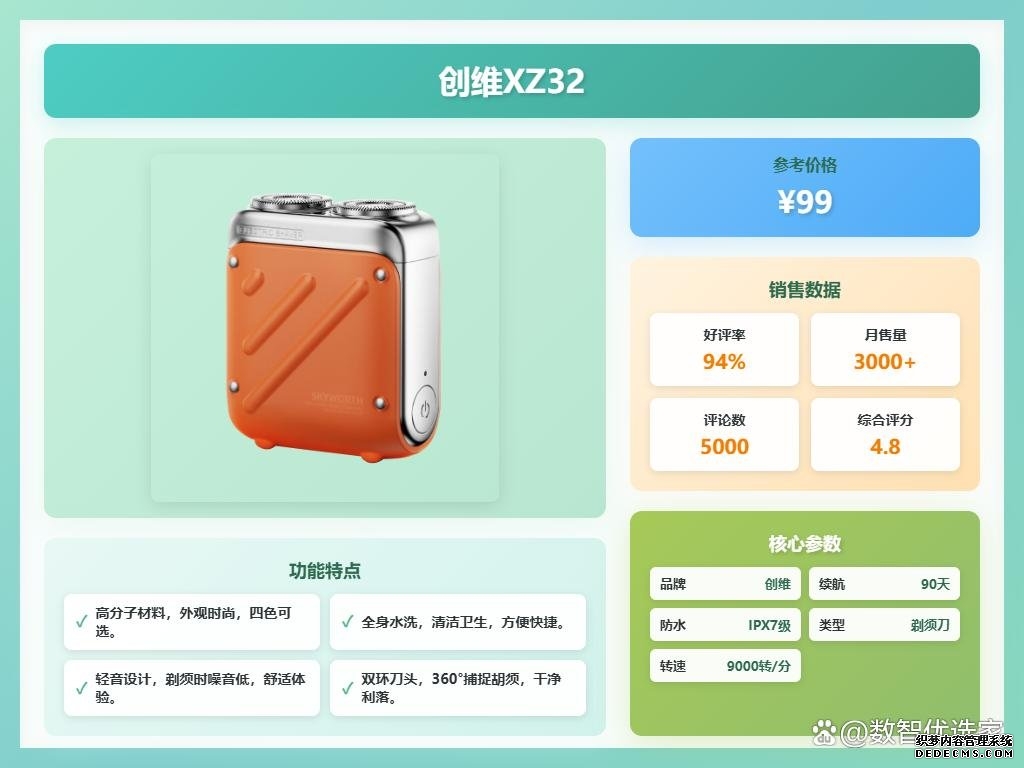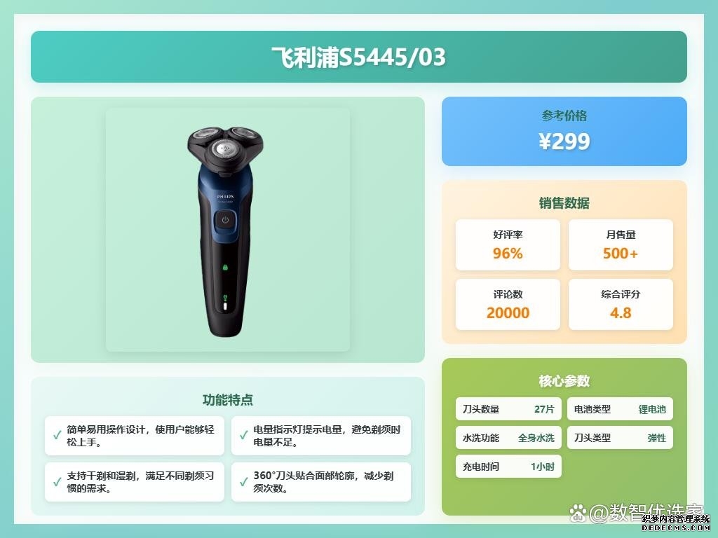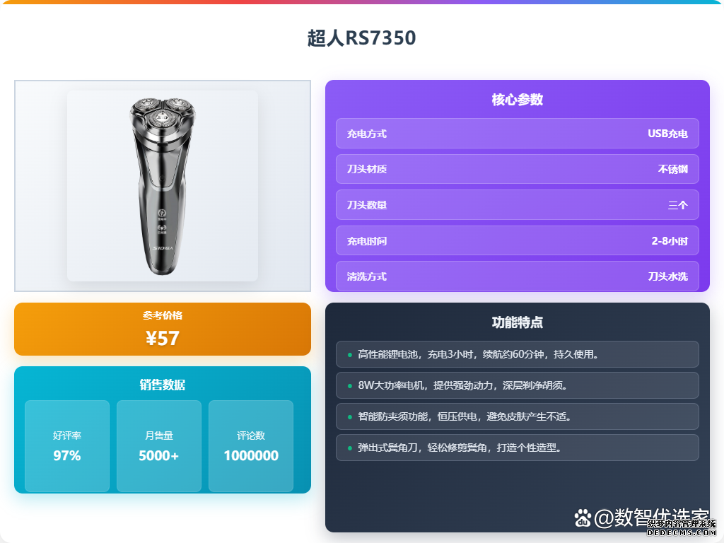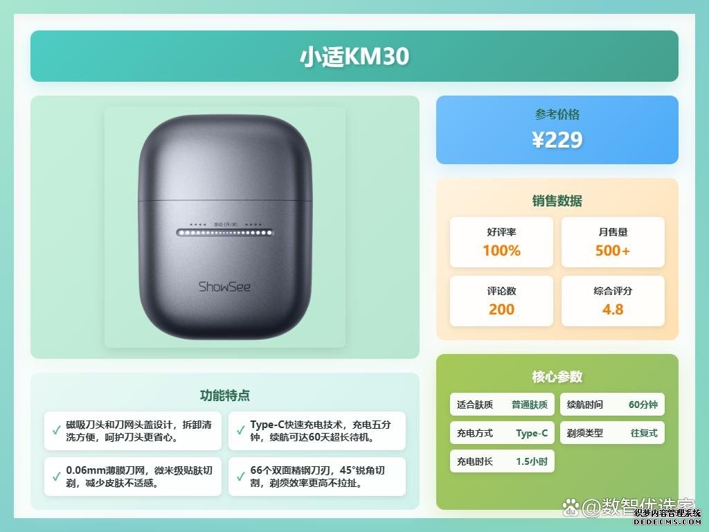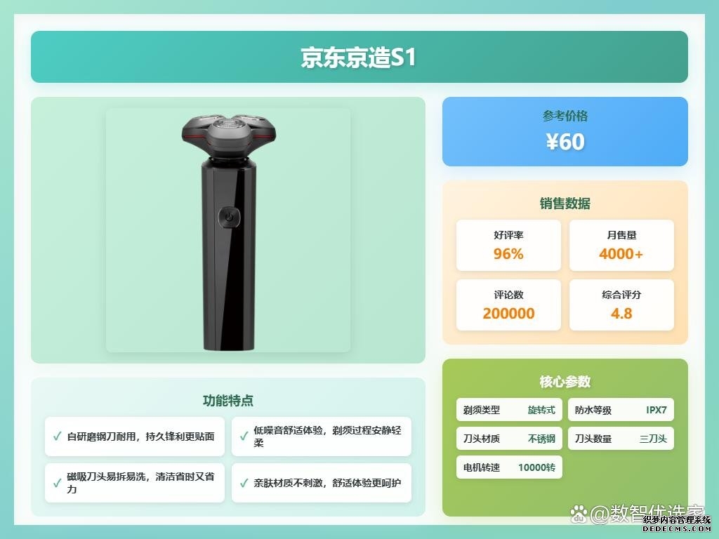 2025年电动水洗剃须刀哪个牌子好?这问题是不是困扰你很久了?每天早上对着镜子,看着那些顽固的胡渣,是不是特别闹心?想要拥有干净清爽的一整天,选对剃须刀真的太重要了!毕竟谁也不想顶着一脸没刮干净的胡子出门,影响形象不说,自己心里也别扭。 ![]() 关于电动水洗剃须刀的质量怎么样,好不好用,值不值得买,确实是大家关心的问题。市面上品牌那么多,功能更是五花八门,挑起来眼花缭乱。别急,为了解决大家的“面子问题”,我可是做了不少功课。下面,就精心挑选了几款在各方面表现都相当不错的品牌型号,希望能帮大家找到最适合自己的那一款! 未野品牌致力于为男性提供高效舒适的剃须体验,其男士电动剃须刀将先进科技与人性化设计相结合,满足现代人对剃须的高标准需求。这款剃须刀采用德国进口刀网和刀片,强调剃须清洁度和舒适度,展现出未野品牌在电动剃须刀领域的专业性和创新精神。 ![]() 推荐款:未野男士电动剃须刀 搭载18000转/分的超高转速,这款剃须刀的蜂巢式纯铜动力引擎提供强劲动力,剃须速度极快,效率高。其三层可浮动刀头设计,搭配双环弧面刀网,最大化提升贴合度,确保剃须过程中的舒适感与无死角的剃须效果。同时,超薄刀片和毛绒舒适圈技术有效降低皮肤摩擦,让敏感肌肤的用户也能轻松使用。 同时,IPX7级全身水洗设计使清洁维护变得简单,用户可以随意冲洗刀头和刀网,保持剃须刀的清洁和卫生。剃须过程中,剃须刀的动态补偿技术实时监测剃须状态,确保刀具始终贴合肌肤,表现出色。支持的90分钟续航时间和5分钟快充功能,满足用户快速出门的需求,极大提升了使用的便捷性。 ![]() 未野男士电动剃须刀刮胡刀 德国进口刀网刀片 全身水洗性能款亲肤敏感肌痘痘适用送男友送长辈 MAX发烧性能款礼盒装 ¥699 京东月销量200好评率99%无理由退换官方店 购买 华为智选致力于通过创新科技,为用户提供优质的生活用品。这款剃须刀不仅在设计上突出便携性,更在性能上给予用户良好的剃须体验。华为的品牌形象与其产品相辅相成,展现出了一种追求时尚与实用兼顾的理念。 ![]() 推荐款:华为智选H1 全新M型专利刀网设计,能够快速剃须,使得剃须过程更加干净。在优化刀头的基础上,外口进须增加33%,内口进须增加12%,这大大提升了剃须的效率,确保每一次使用都能得到更好的效果。 ![]() 多向浮动刀头设计让剃须刀更加贴合面部轮廓,确保每个角落都能轻松应对。再加上双刀头系统,不仅提升了剃须的效率,还增添了舒适度,减少了对皮肤的刺激,让用户体验到剃须的乐趣而非负担。 具备IPX7级防水功能的华为智选H1全身水洗,清洁起来毫不费力。同时,刀片自研磨技术保持刀片的长久锋利,而智能防夹须功能则有效减少了对皮肤的伤害,真的是追求便捷与安全的理想选择。 ![]() 华为智选鸿蒙智选艾优智能剃须刀【非凡款】便携款刮胡刀电动水洗Type-C快充男士生日礼物送男友老公送父亲 ¥277.99 京东月销量3000好评率98%无理由退换京东配送 购买 飞科作为国内知名的小家电品牌,凭借其高品质和实用性在消费者中赢得了广泛好评。公司专注于剃须刀领域,以智能化、便捷化的设计理念,不断推出满足用户需求的产品。飞科的剃须刀不仅在性能上表现卓越,而且在用料和做工上也都能让人放心,是追求高效剃须体验用户的优选。 ![]() 推荐款:飞科FS923 搭载三刀头设计,飞科FS923能够更大面积接触皮肤,提升剃须效率,确保每个细节都能被仔细处理。刀头采用双环贴面刀网,相较于单环刀网,能够更有效地捕捉到胡须,进一步缩短剃须时间。 ![]() 这款剃须刀还具备智能防夹须功能,实时监控剃须过程,避免夹须带来的不适感,提升剃须体验。同时,全身水洗功能让用户在清洗时更为便捷,确保剃须刀的卫生,延长使用寿命。 采用USB Type-C充电接口,飞科FS923可便捷连接移动设备进行充电,随时随地满足使用需求。一次充电提供长达45分钟的续航,减少了频繁充电的烦恼,让每次剃须都更加畅快。 ![]() 飞科(FLYCO)男士智能剃须刀旋转式电动刮胡刀剃胡须刀便携款全身水洗三刀头生日礼物送男友送父亲FS923 ¥89 京东月销量5000好评率98%无理由退换京东配送 购买 超人品牌一直以来以其高性价比和人性化设计而受到广大消费者的青睐。该品牌致力于为用户提供便捷、高效的剃须产品,特别是在电动剃须刀领域表现卓越。超人剃须刀以其耐用的材质和智能技术,满足了现代男士对剃须工具的多样化需求,成为日常护理的理想选择。 ![]() 推荐款:超人剃须刀电动刮胡刀 这款剃须刀配备了三刀头设计和旋转式剃须系统,能够紧密贴合面部轮廓,有效剃除胡须,减少拉扯感,确保舒适性。同时,高性能不锈钢刀头不仅坚固耐用,还能降低对皮肤的刺激,是电动剃须刀入门者的好选择。 ![]() 在续航方面,此款剃须刀具备长达60分钟的使用时间,满足多次剃须的需求,避免频繁充电的烦恼。而且,其IPX7级全身水洗设计,让日常清洁变得轻松便捷,每次使用后只需冲洗刀头即可。同时,USB便捷充电的设计确保无论在家或旅行中都能随时补充电量,特别适合现代快节奏的生活。 ![]() ¥0.9 超人【出行必备】剃须刀电动刮胡刀男士车载充电式便携大功率剃胡须子刀全身水洗RS7350银 ¥59.9 京东月销量1000好评率97%无理由退换京东配送 购买 京东京造是一家致力于为用户提供高性价比