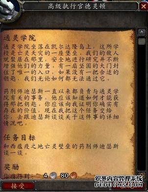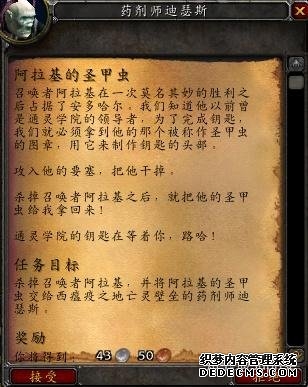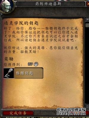 目前有很多类似文章的介绍,都包含者钥匙如何获得的介绍,本人在参考的时候有时候也会碰到疑惑,比如某些任务不知道在什么地方接到之类的问题。所以这里结合自己碰到问题和经验的在实践同时记录一下,以便为其他玩家更好更准确更快的完成任务。好了,那就开始今天的介绍。 第一步,如果没有做过这部分的任务,第一个任务应该是”战斗的号角:瘟疫之地!“ ,这个任务是在各大主城都能接到,比如幽暗城的“预言者巴萨扎德”,此人在中间位置走动,可以寻找一下(因为本人最初的时候已经做完,也许是准备去西瘟疫的时候从幽暗城接到就直接做了,目标找到 “ 高级执行官德灵顿” ![]() ![]() 第二步,完成上面任务,高级执行官德灵顿会给你下一个任务,“误导血色十字军”,接受任务后会拿到“天灾战旗” ![]() ![]() 这时候不要着急走,在NPC:高级执行官德灵顿旁边有个箱子,打开获得“瓶中火”,好了,现在可以出发了。 ![]() 走到下面这个位置地方 ![]() 鼠标移动到帐篷上,会变成齿轮状,点击帐篷即可摧毁帐篷,帐篷摧毁后,选择背包里面的“天灾战旗”使用即可,这样“误导血色十字军”的任务就完成了。让我们回去复命吧。回到接任务的地方NPC:高级执行官德灵顿 ![]() 第三步,完成上述任务,还是在NPC:高级执行官德灵顿,这里接到“标记哨塔”的任务, ![]() 接受完任务后,找到四个哨塔的位置,分别使用“信号火炬”,可以站在门口的位置使用,并且火炬是有2分钟的CD。四个哨塔标记完成之后就可以回去复命了。 ![]() 第四步,完成上面任务,就会接到“通灵学院”的任务,接受之后就在旁边的NPC:药剂师迪瑟斯,交掉任务 ![]() ![]() 第五步,就是接受“骸骨碎片”任务,需要15个骸骨碎片,很多怪都会掉这个,大家可根据下图的位置来搜集。基本杀15个小怪就可以集齐。完成后,可以 回到NPC 药剂师迪瑟斯,完成任务 ![]() 第六步, 接受“昂贵的磨具”任务,这个时候 我们可以飞往加基森了。完成这个任务需要15G ![]() 飞往加基森来到,来到NPC:克林科古德斯迪尔面前交掉任务。 ![]() ![]() 第七步,接受”火羽山“任务,这里记得2块瑟银锭再出发,因为环形山的地图是没有邮箱。 ![]() ![]() 在这个湖边使用骷髅钥匙磨具,这个湖在地图中间的山顶上,然后会获得”未完工的骷髅钥匙",拿到之后我们可以飞机去见NPC 药剂师迪瑟斯,位置可以参考第四步。 第八步,交掉上面的任务,就会接到“阿拉基的圣甲虫”任务,位置如下,是一个精英怪。杀完之后可以拾取就可以了 ![]() ![]() 第九步,完成通灵学院的钥匙的任务。 ![]() 好了,到此就可以完成了整个任务,可以顺利进入通灵学院副本了,如果你们某些任务已经完成,可以直接跳到下一个,方便更多的玩家迅速定位自己的开始位置。今天分享就到此,欢迎更多的艾泽拉斯勇士一起奋斗。 (责任编辑:admin666) |