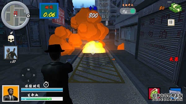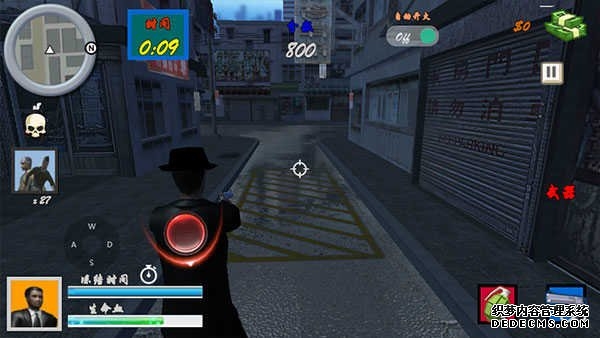 3、有了武器之后,就可以开始战斗了,操作方式非常的简单易上手,左边控制瞄准方向,右边使用武器射击等等;