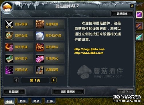 播报 编辑 魔兽蘑菇内置插件库,包含当前魔兽世界游戏中流行的上千种优秀单体插件,并附带插件使用说明。蘑菇插件库收录了多款优秀的整合插件和界面风格包,喜欢使用整合插件的玩家可以在这里轻松找到自己所爱。 蘑菇收录插件经由人工扫毒和安全工具检验,彻底清除了插件中包含的exe和bat等可执行文件,确保插件的绿色安全。玩家通过魔兽蘑菇插件管理器直接进行插件的搜索、选择、下载、使用、移除等操作,避免浏览插件站时感染病毒木马,对魔兽世界账号安全起到的极大的保障。 魔兽蘑菇独创的插件服务模式——宏仓库,它提供功能全面的宏资讯,玩家可以通过不同职业和角色定位的分类筛选,轻松查找到自己所需的各种宏命令。 魔兽蘑菇插件管理器 蘑菇插件整合包当前蘑菇插件标准版收录了界面、战斗、物品、辅助、团队等分类共计四十余款优秀插件,从任务向导到副本掉落,从技能冷却到战斗警报,蘑菇开发的整合包正在全面满足着魔兽世界插件使用者各方面的需求。 2.2版本蘑菇整合包加入配置保存功能,用户可以保存多套插件配置(如战场时关闭团队插件,开启PVP插件等),方便在需要的时候迅速切换。整合包提供最多3套配置保存方案。 蘑菇职业天赋推荐器点击职业天赋推荐器中的职业图标和天赋分类,玩家即可便捷查阅当前版本中最流行的职业天赋,如战士RAID防御天赋、奥法PVE输出天赋等。数下点击即可查看完整天赋雕纹信息,减轻手指负担。 蘑菇天赋推荐器台服版即将上线,届时将提供更全面的大灾变各职业天赋信息。 播报 编辑 (V5.2.7)更新内容: 1.法术计时条:解决骑士职业的报错; 2.蘑菇聊天:解决德鲁伊属性通报错乱; 3.头像增强:玩家头像百分比可以单独设置; 4.聊天屏蔽:低级玩家屏蔽可以自行设置等级; 5.装备评分:解决GS过高变黑色的BUG; 2012-11-20 更新内容:(更新至3.4.2) 1、修复断网情况下升级插件会导致插件删除的BUG; 2012-10-29 更新内容: 模型修改器更新至2.1.0版本 1、新增黑色泥土模型; 2、修复幽灵虎等坐骑变小的问题; 2012-10-11 更新内容:(更新至3.3.2) 1、反和谐功能更新支持wow5.0.5; 模型修改器更新至2.1.0版本 1、新增MOP矿石,草药,龙蛋修改; 2、新增MOP坐骑修改;