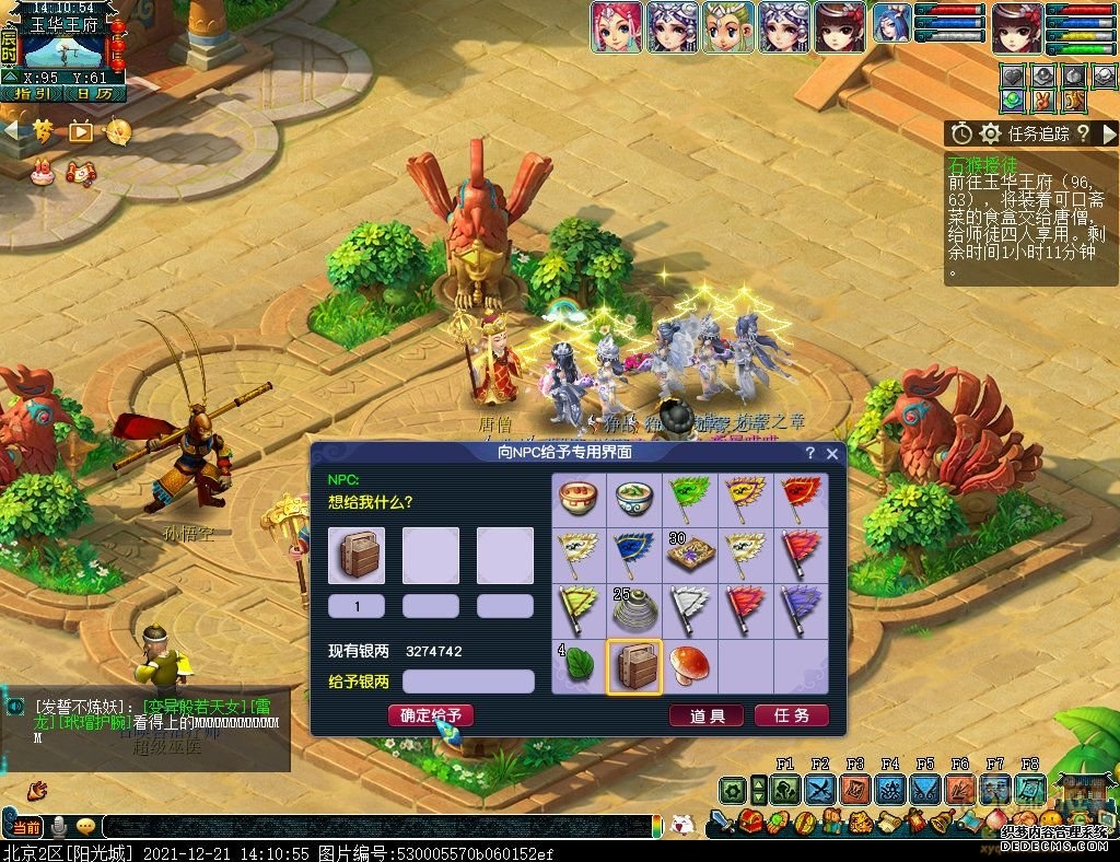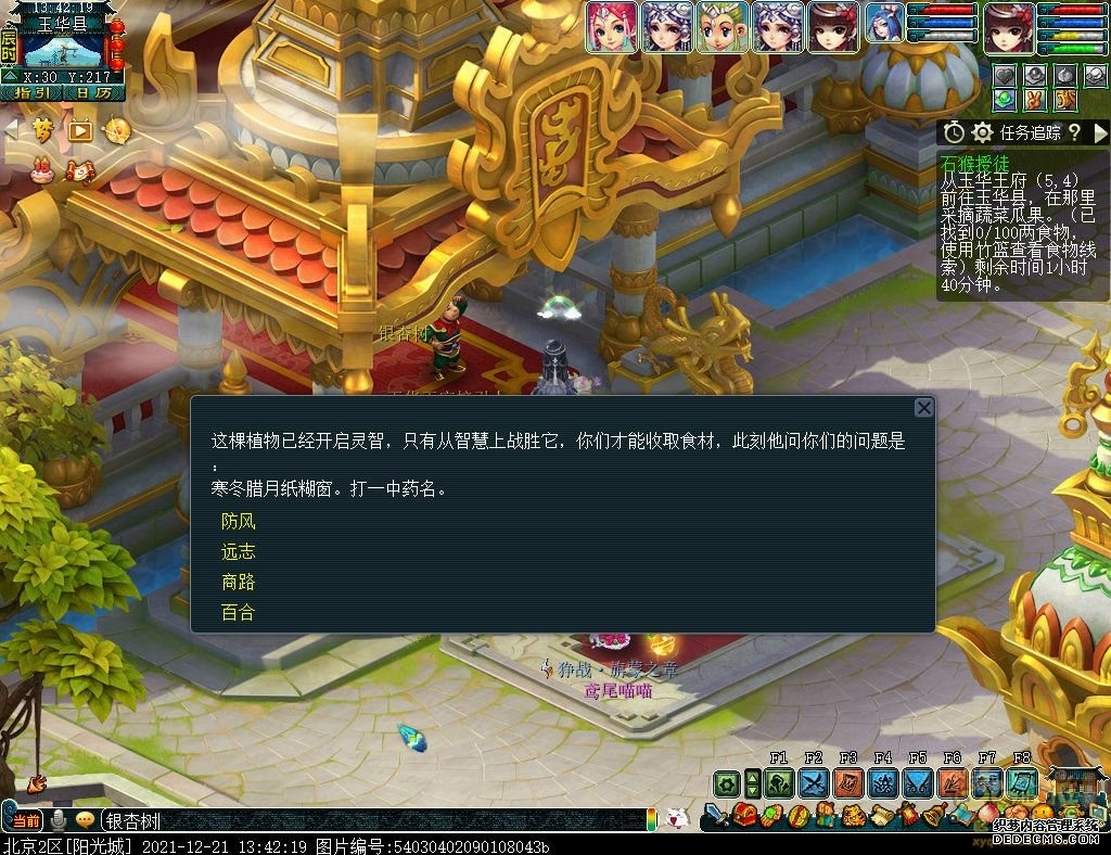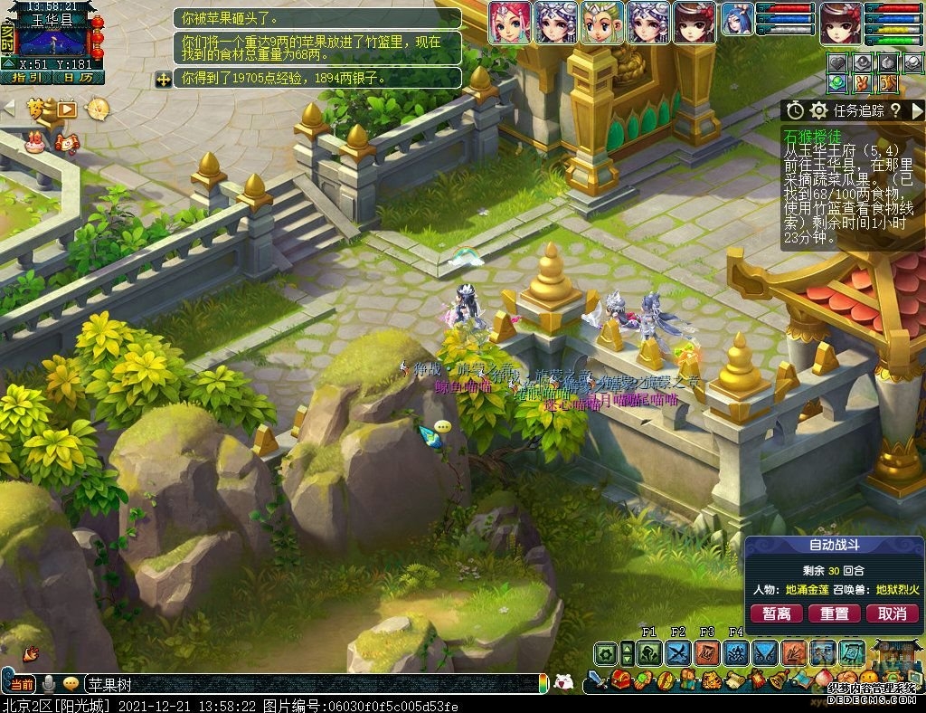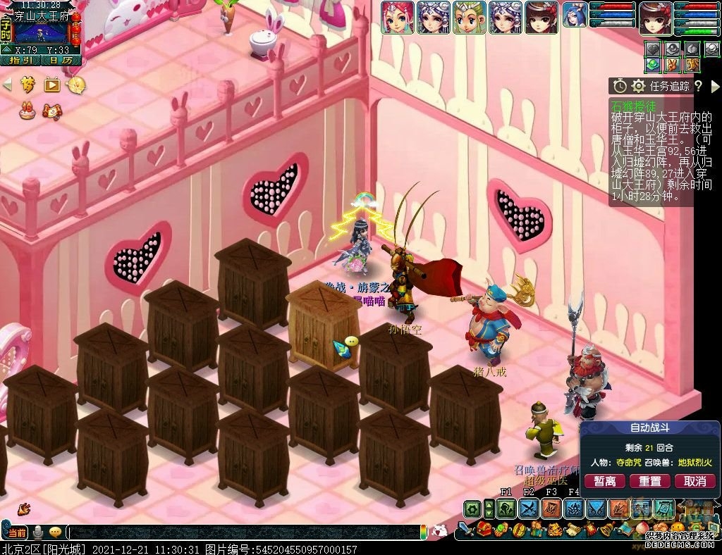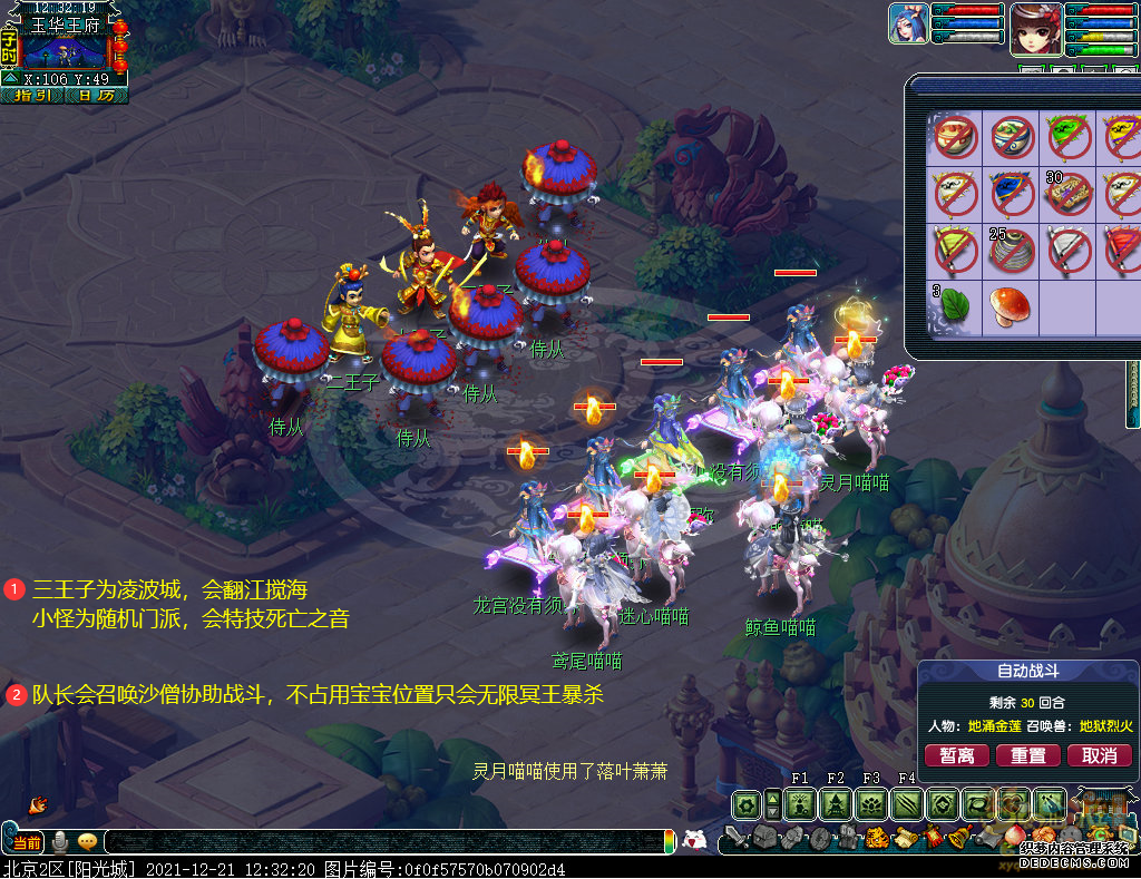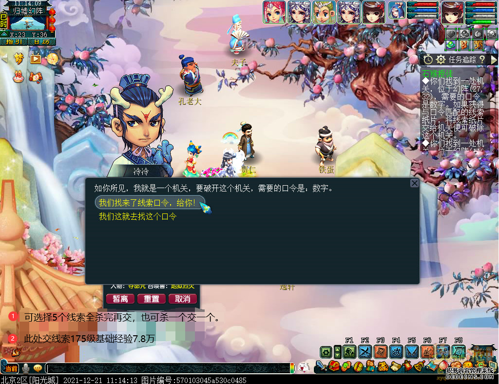 [h2]副本简介[/h2] 唐僧师徒一行来到玉华县,唐僧进宫与玉华王相谈甚欢,玉华王宣与唐僧师徒4人一起用斋,之后却麻烦不断。 我们需要前去玉华县,帮助唐僧师徒几人解决麻烦。悟空、八戒、沙僧三人顺利将玉华王的三个儿子收为徒弟,传授一身本事。 ![]() 副本说明: 1、此副本为双支线,开启后随机进入其中一条支线。任务时间为120分钟。 2、等级限制:≥60级 3、人数要求:5人 4、战斗死亡为正常死亡。 [h2]测试队伍[/h2] ![]() [h2]开启副本[/h2] ![]() 可以组好队在长安城(150,184)处找副本官员直接开启副本,创建成功后可以立即传送到副本场景。 进入后随机触发一条支线: [h2]支线一[/h2] ![]() 安抚受惊的王子后,进入地洞里找线索营救玉华王。 图上5个标识为5个传送门,点击传送门可随机传送到其他4个传送门外,方便更快捷地找线索。 ![]() ![]() 找到线索人的时候,需要与之一战,进入战斗只有两个怪,战斗胜利获得线索口令。 需要注意:所有NPC不止是只能找一次,获得线索和上交都会刷新NPC,所以可以同一个NPC再找第二次试一下。 ![]() 得到线索口令后,找到对应机关给予正确口令即可完成,可选择获得5个线索再交,也可选择获得一个交一个。 ![]() ![]() 找齐线索口令后,在任务栏所提示的位置找到地洞,点击进入继续追寻唐僧和玉华王的下落,来到了穿山大王府。 ![]() ![]() 木柜随机触发小事件,包括,空柜子、增加10点愤怒、变身蝙蝠或野猪(原来有变身的不覆盖)、蘑菇、遇到老鼠(战斗)等等,另外,开启2个木柜的时间间隔需≥5秒。 ![]() 大概破开一半木柜后,木柜会全部消失,此时可以上阁楼(50,50)找到穿山大王。 [h2]支线二[/h2] ![]() ![]() 前往玉华县分别带孙悟空、猪八戒和沙僧到玉华府与唐僧一同用膳,在进入玉华府后,注意不要碰上宫女,不然会触发战斗。 ![]() ![]() ![]() ![]() ![]() ![]() ![]() ![]() 从玉华府(5,4)处传送去玉华县采集蔬果,右击竹篮可以获知何处有蔬果,采集蔬果时可能会触发获得蘑菇、直接获得蔬果、回答问题或战斗。 ![]() ![]() ![]() ![]() 蔬果煮熟后,将食物分发给三位王子,触发三场战斗,战斗很简单,会有悟空、八戒和沙僧来助战。 三场战斗都有较大几率获得物品哦~ [h2]两个不同支线的汇总后续[/h2] ![]() ![]() ![]() 欣赏完一段小动画后,我们需要在场景里找到9个仙气,然后将其分发给3个王子再跟3个王子切磋切磋(这里大家可以使用蘑菇)。 [h2]决战[/h2] ![]() 副本至此结束。 总结:石猴授徒这个5人的普通副本,战斗难度不高,耗时半小时左右,物品奖励也不错。 时间较多的小伙伴可选择二刷,二刷切换点在找仙气那里,副本进行到找仙气就可以等失败了。 |