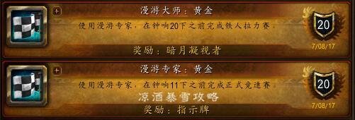 这一期说说暗月马戏团。 暗月马戏团靠近海边有个暗月竞速赛,分为左右两个比赛,一个较远的翻山越岭的叫铁人拉力赛,较近的只在平地跑的叫正式竞速赛,要求你骑着四种比赛坐骑(陆行鸟、机器陆行鸟、小飞机、飞天魔像)完成比赛路线,如果你能在固定的钟响数内(就是固定时间内)跑完全程,就可以获得成就,成就还会奖励一些玩具、宠物什么的。 四种坐骑完成铁人拉力赛和正式竞速赛,共8个最终奖励,其中铁人拉力赛需要20声钟响内完成,正式竞速赛需要11声钟响内完成。 ![]() 这个如果正常跑的话不太容易,你需要熟练地运用地图上的加速道具、跳跃弹簧等,像我这样比较手残的更是难上加难。 这一期说一个简单完成这两个比赛的方法,可以轻松获得8个最终奖励,因为属于利用bug,所以有极低的几率会被收回奖励/封号,害怕的话就不要尝试了。 和以前的卡试炼场原理是一样的,也是为什么试炼场后来改成了一旦出来就不能再进去的重要原因之一。 你需要能三开(二三号都不需要有月卡)或者有两个朋友帮你。 联盟方双开可以做路程较短的正式竞速赛,铁人拉力赛时间不够必须三开,部落必须三开,理由后面说。 首先双开的小号建一个20级同盟种族角色,然后从暴风城大使馆来到暴风城监狱门口,这里有一个集合石,你的大号也来到这里。 大号和小号组队,小号先选中大号为目标,用暴风城监狱的集合石起门拉人,大号点击小号起的门,过一会就会出现这个被召唤的选项,不要点。 ![]() 大号顶着这个被召唤的选项,去拍卖行门口的暗月马戏团法师那里,花50银被传送到暗月马戏团入口,进入暗月马戏团。 ![]() 进入暗月马戏团之后直接跳崖滑翔翼,到海边,接任务开始暗月竞速赛,这里建议选择机械陆行鸟,就是大号的陆行鸟,它的一技能是疾跑,二技能是大跳,三技能捡到钱包之后可以用火箭把拦截飞艇打晕,个人感觉比其他的简单一点。 直接撞你想上的坐骑就可以上坐骑了,新号来到海边可能是主线任务,也就是让你试玩,需要先完成主线,才有蓝色的重复任务,蓝色重复任务才能做成就,记得带暗月游戏币。 按照正常流程跑,也就是经过蓝色、绿色、红色签到点,到达红色签到点之后你的目标就变成了返回起点,必须在成就要求的钟响数内,也就是专业竞速赛11响内,铁人拉力赛20响内,这个钟响数可以看屏幕正上方这个就是,如果你在11响内跑完了三个签到点,目标变成了返回起点,此时就点“接受”被拉到暴风城监狱门口。 ![]() 需要注意的是,第三个点,也就是红色光柱那里有一个拦截飞艇,如果它看到你会来打你,你就进入了战斗,进入战斗是不能被拉的,所以你最好提前吃个钱包用三技能火箭把它打晕,或者进入战斗了就快跑跑远点脱战,时间是够的。 此时我们被拉到了暴风城监狱门口,任务栏里可以看到我们接的任务里目标已经是到达终点了: ![]() 此时把你的队伍转换成团队!非常重要,因为大部分任务在团队中是不能做进度的,所以当你转化成团队之后,你的任务就暂停了,也就是敲钟数暂停了! ![]() 转化成团队之后还是用拍卖行门口的暗月马戏团法师传送到暗月马戏团,然后去海边,这回不用着急了,慢慢过去就行。 到了海边,选择你要做成就的坐骑,也就是四种坐骑之一,比如你要做动力贩子(飞天魔像)的成就,就骑上动力贩子,此时你还是在团队中,任务被强制暂停,所以你在起点那里转悠也没事。 ![]() 现在,退出团队,正常的话你就跳成就了,如果没跳成就,你就直接再去撞一下你要做成就的那个坐骑,在撞上坐骑的一瞬间就会跳成就! ![]() 铁人拉力赛同理,也就是20声敲钟之内跑完前三点,任务变成了“返回起点”时被拉出去,小队转团队,进入马戏团,跑到海边,骑上你想跳成就的坐骑,退出团队,跳成就,没跳成就就再撞一下你想跳成就的那个坐骑。 这里可能会比传出去时候多一响,所以最好是在10响内完成正式、19响内完成铁人被拉出去,这里多一响也能跳成就。 跑前三个点用哪个都行,我推荐用机械陆行鸟,后面回到起点你再选你要跳成就的就行。 因为铁人拉力赛比正式竞速赛所需时间长很多,所以双开自己拉自己时间不够,即使是正式竞速赛想要自己拉自己的时间也是很极限的,所以最好还是三开,或者有两个朋友在暴风城监狱门口的集合石那里拉你。 三开就是你的大号到马戏团的海边接了任务准备开始的时候,小号再拉,大号就有2分钟的被拉时间,肯定够。 部落方可以用怒焰峡谷的集合石,但是这个集合石到暗月马戏团法师的距离比联盟监狱到ah远很多,所以估计部落方两个都必须是三开。 未付费账号,也就是没有月卡的账号是可以玩20级及以下角色的,也就是同盟种族20级,我上面的那个“我拉我自己”就是未付费账号,亲测可以拉人。 最后说一下成就奖励的玩具效果。 指示牌:在地上放一个指示牌,5分钟cd。 ![]() 食火者的瓶子,让你喷火,10秒cd。 ![]() 暗月凝视者,45秒内召唤一个眼睛,控制眼睛移动观察,和术士的基尔罗格之眼功能一样,眼睛略大,10分钟cd。 ![]() 暗月的凝视:用暗月符号标记一个怪一分钟。10分钟cd。 ![]() 暗月永久烟花:就是放个烟花,3分钟cd。 ![]() 其余的方格旗是可使用50次的消耗品,暗月大炮无限次使用但不加入玩具箱。迷你飞艇是小宠物,就不展示了。 举报/反馈 |