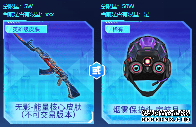 限时放送,15胜场大礼包 活动期间,在枪王排位模式中(爆破)累计15胜场,即可在英雄级武器皮肤无影-能量核心和稀有皮肤版烟雾头-宇航月中任选一件领取;道具限量发放,考验你实力的时候到了!