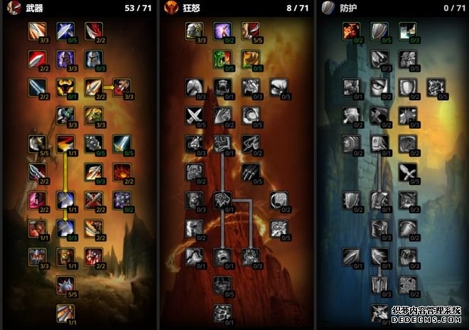 天赋:推荐斧专武器战,71-79级天赋顺序:怒不可遏1-2级、血之狂热1-3级、强化致死打击1-3级、愤怒掌控 雕文:利刃风暴雕文(大)、乘胜追击雕文(大)、冲锋雕文(小)、雷霆一击雕文(小) 圣骑士