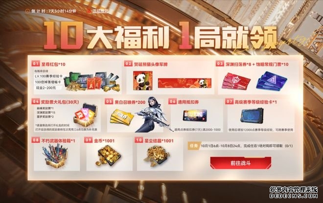 ►10大福利 1局就领 ◆ 活动时间: 2025年9月29日-2025年10月8日 23:59:59 ◆ 活动奖励:
